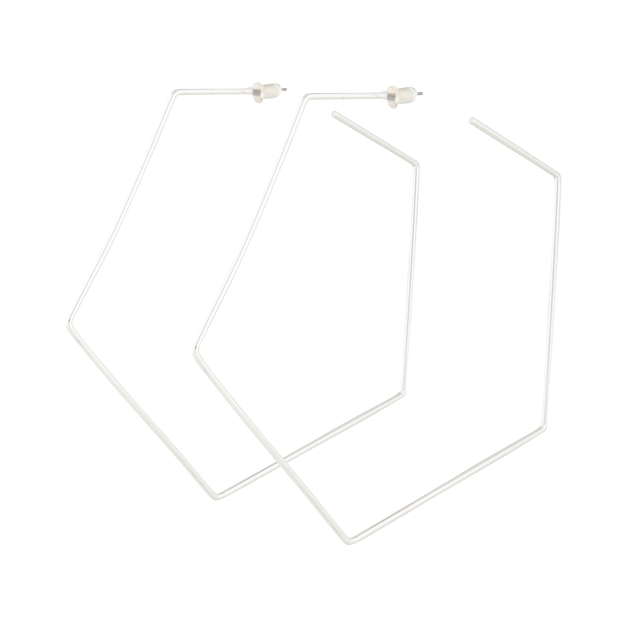 Complete your look with this stunning silver-toned large hexagon hoop earring.