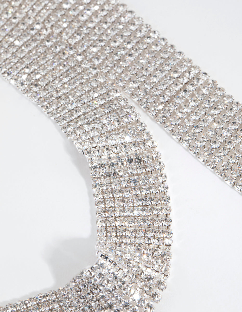 Give your outfit a touch of the dramatic with this stunning scarf necklace! It's silver toned and embellished with hundreds of diamantes. Wear it with other diamante pieces for maximum impact!