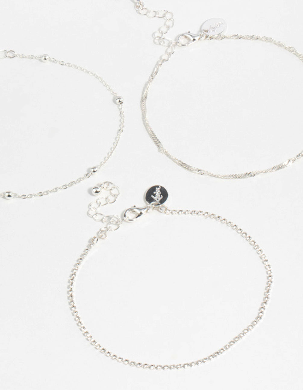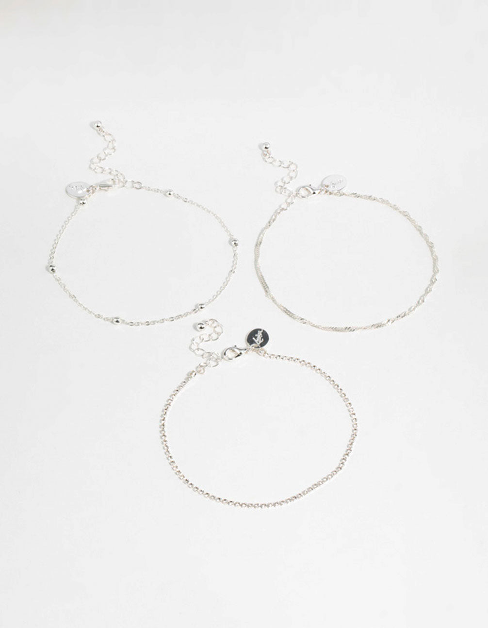 Silver Twisted Cupchain Anklets 3-Pack