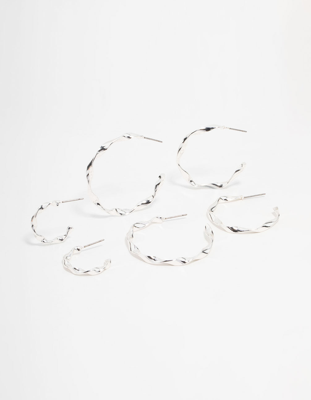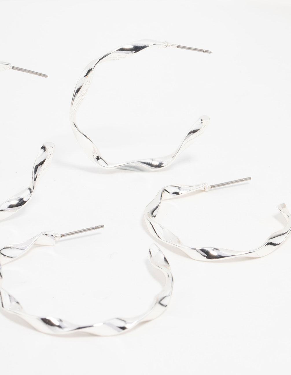 Add a playful twist to your style with this silver-toned hoop set! Featuring three twisted designs in different sizes, you can choose your statement level.