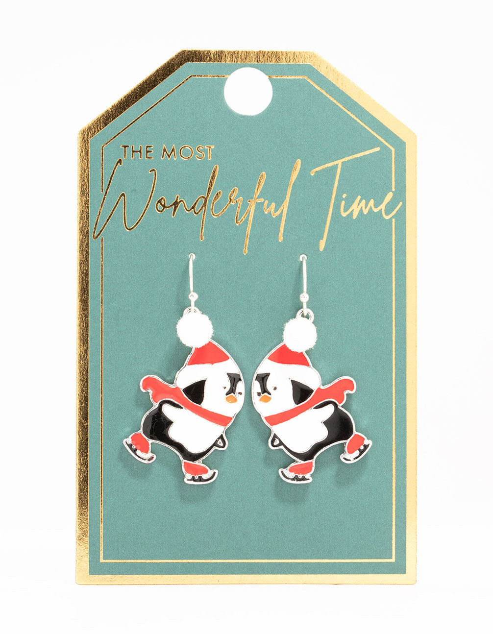 Embrace an adorable vibe this festive season with these silver drop earrings. Featuring cute penguins in their festive gear skating around, they're the perfect blend of fun and holiday cheer.