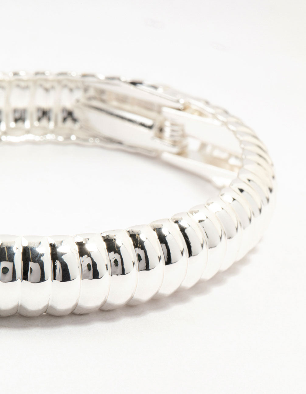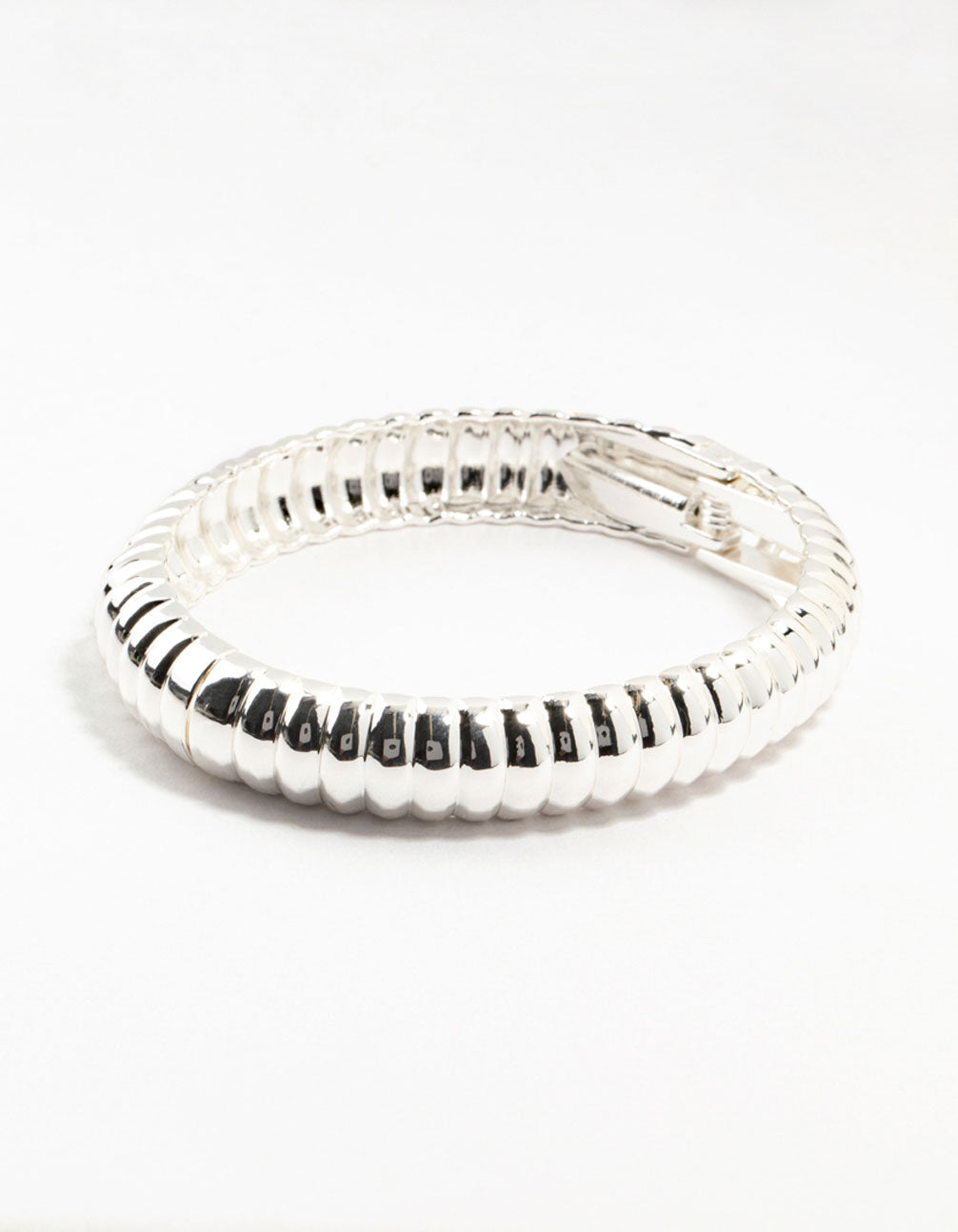 This Small Silver Ribbed Bangle brings modern elegance to any outfit. Crafted from sleek silver, its ribbed texture and minimalist design suit both casual and formal looks. Slip it on for effortless sophistication.