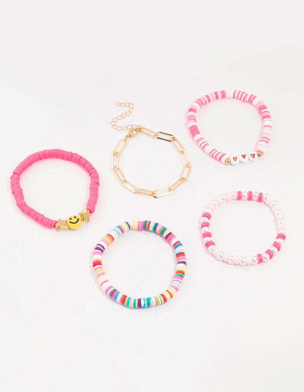 Smiley & Heart Beaded Gold Bracelets 5-Pack