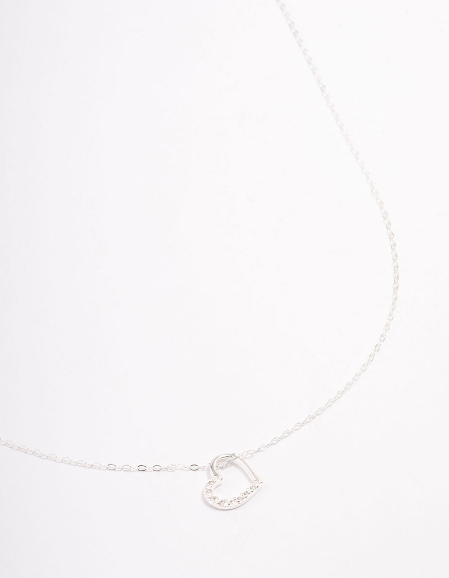 Sterling Silver Open Cubic Zirconia Heart Pendant Necklace