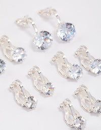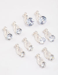 Silver Graduating Diamante Clip On Earrings 5-Pack