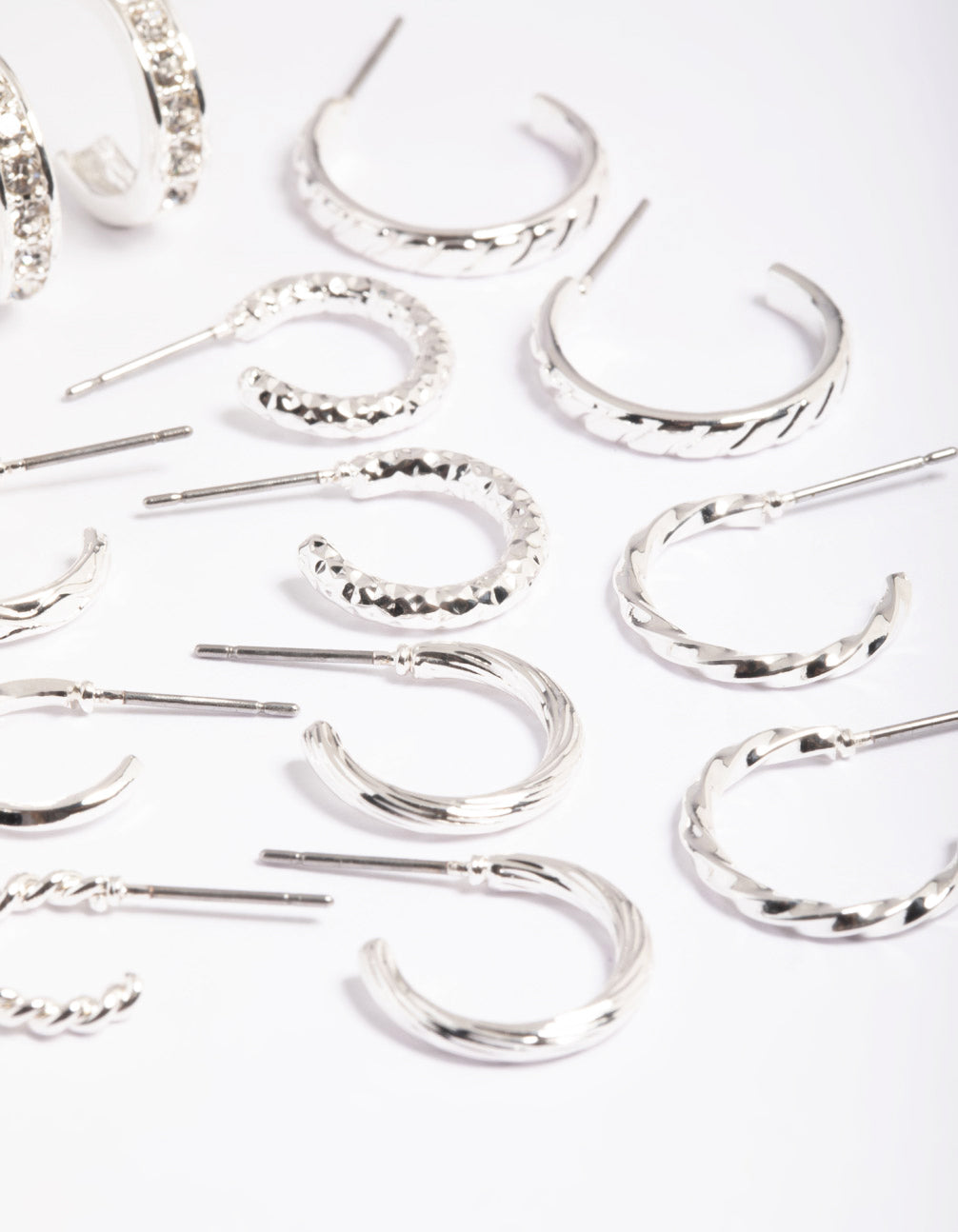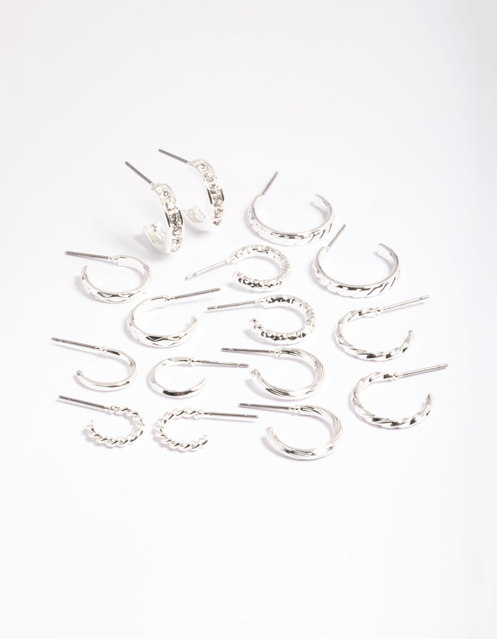 Silver Mixed Diamante Hoop Earrings 8-Pack