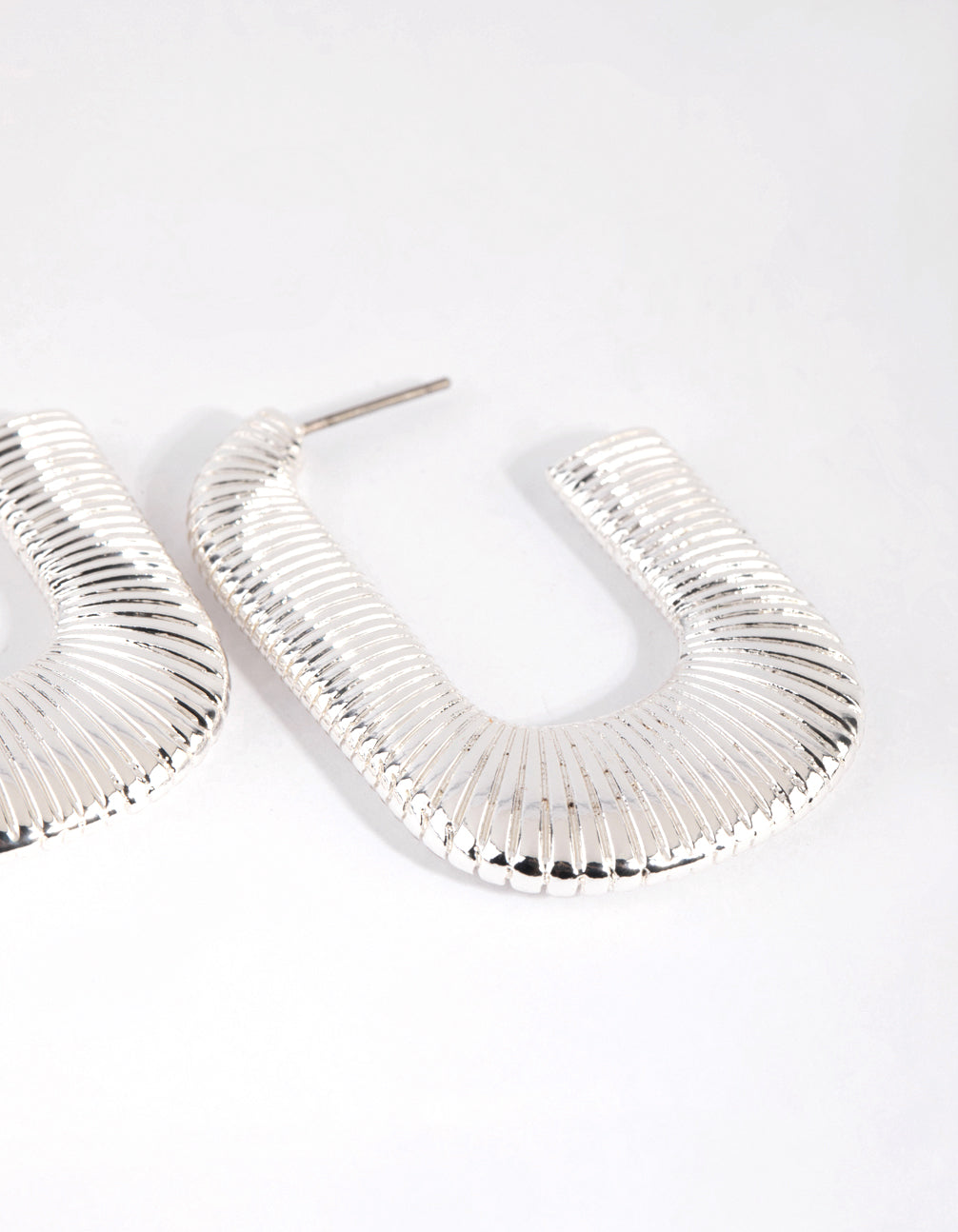 Silver Ribbed Open Rectangle Earrings
