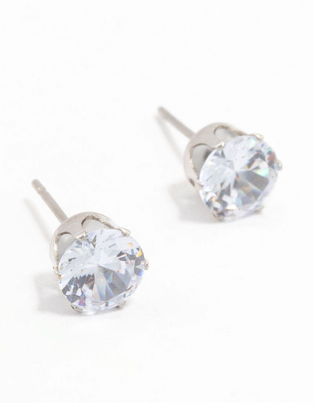 Waterproof Stainless Steel Cubic Zirconia Stud Earrings 7 MM