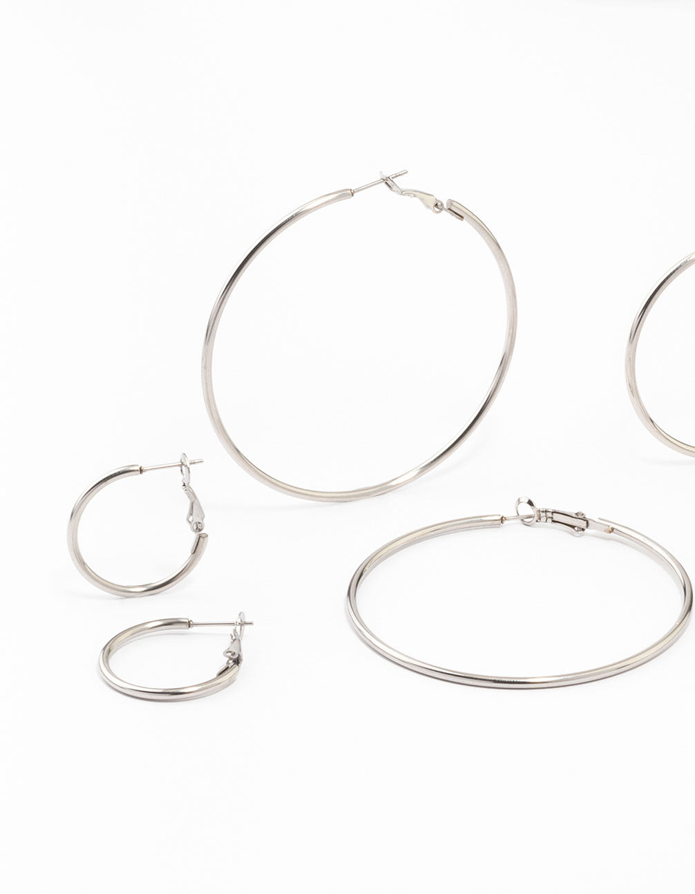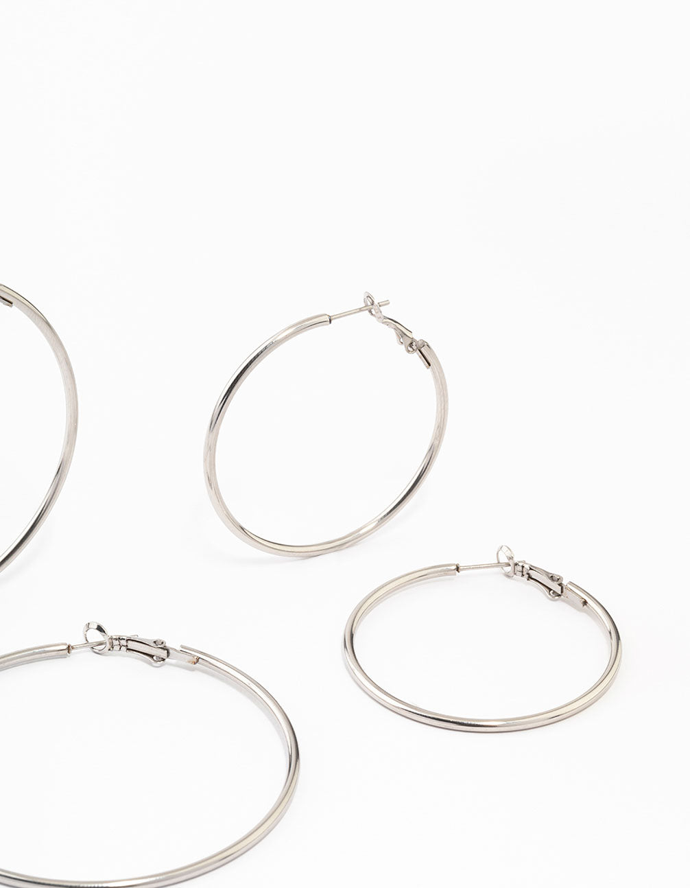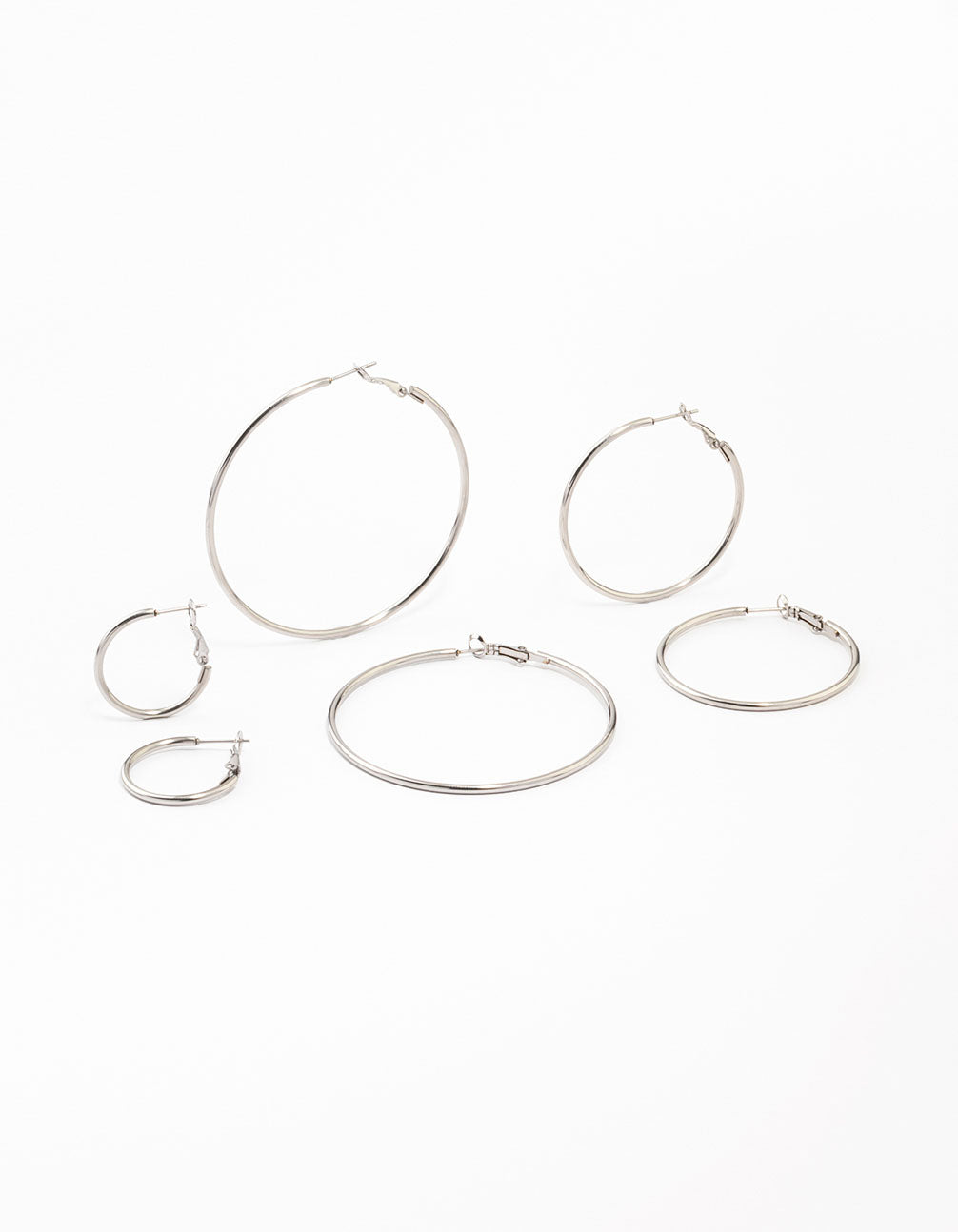 Waterproof Stainless Steel Thin Hoop Earrings 3-Pack
