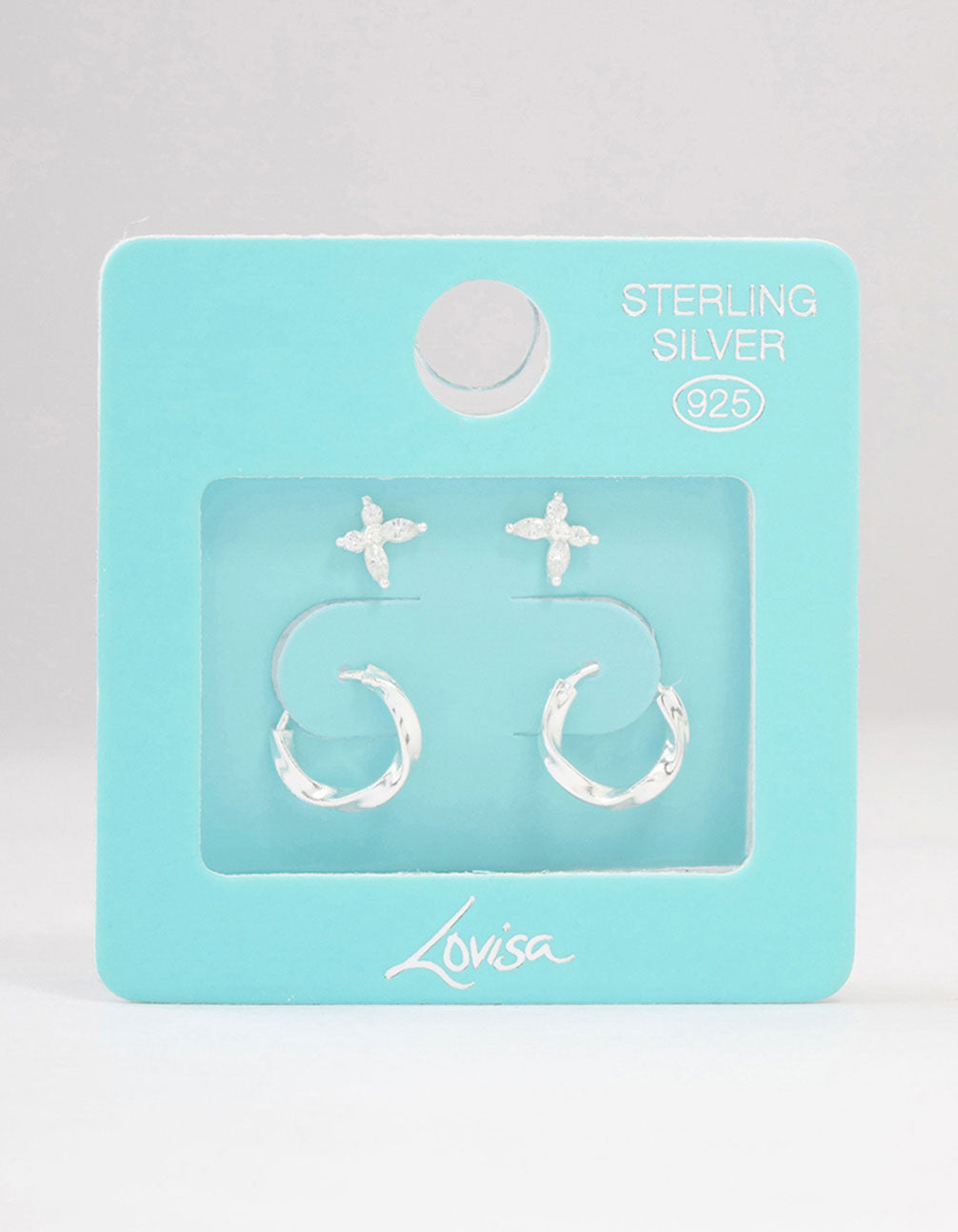 Sterling Silver Butterfly & Hoop Stud Earrings 2-Pack