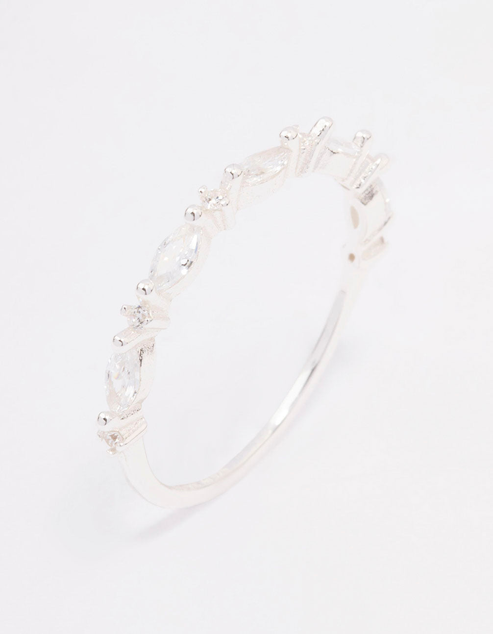 Sterling Silver Cubic Zirconia Alternating Marquise Round Ring