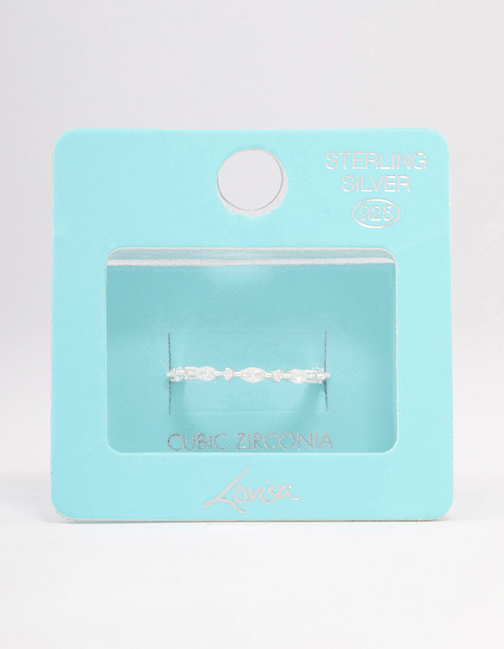This dainty ring is crafted from genuine sterling silver and features an alternating design of cubic zirconia crystals, perfect for adding a subtle touch of sparkle to your stack.