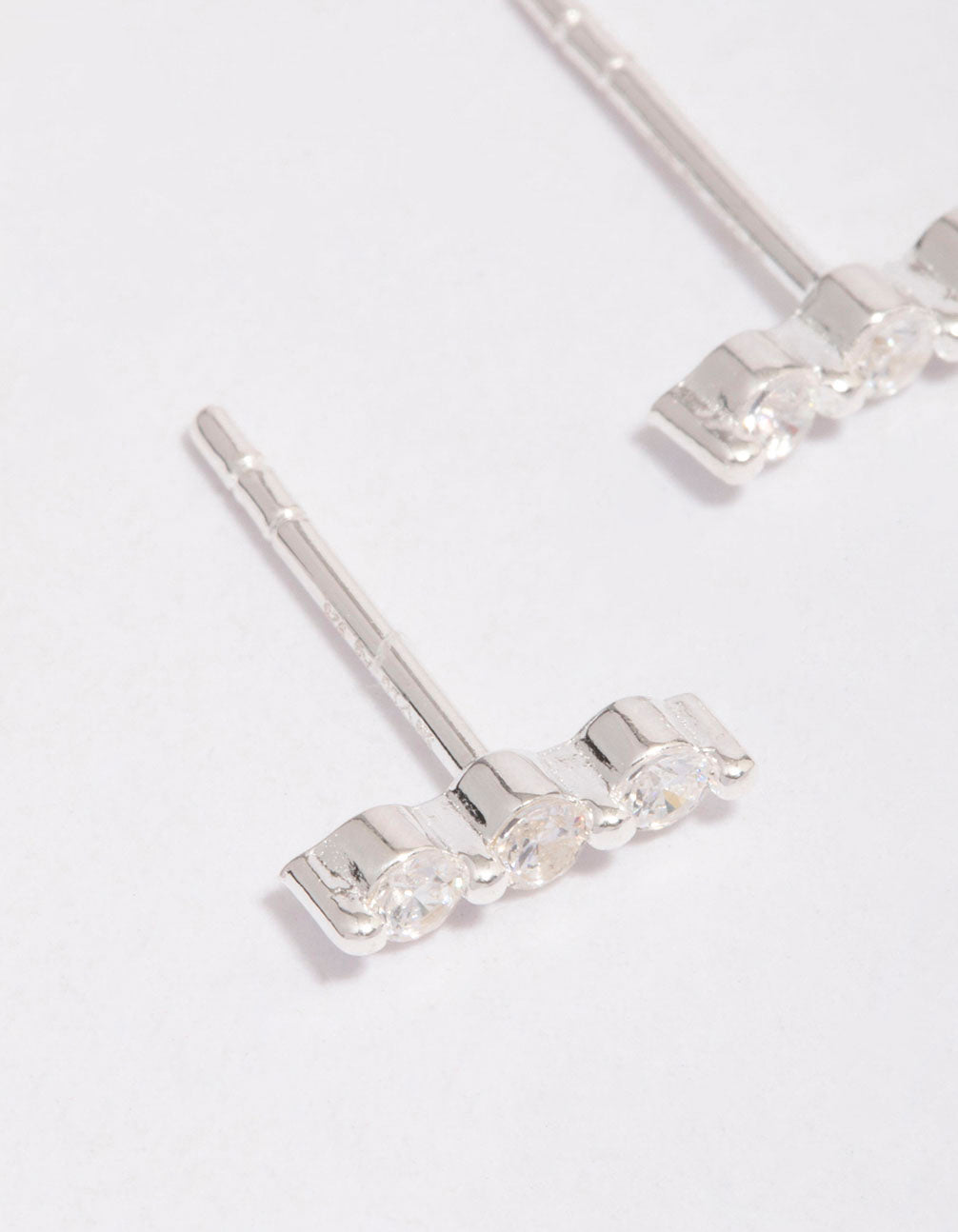 Sterling Silver Cubic Zirconia Bar Stud Earrings