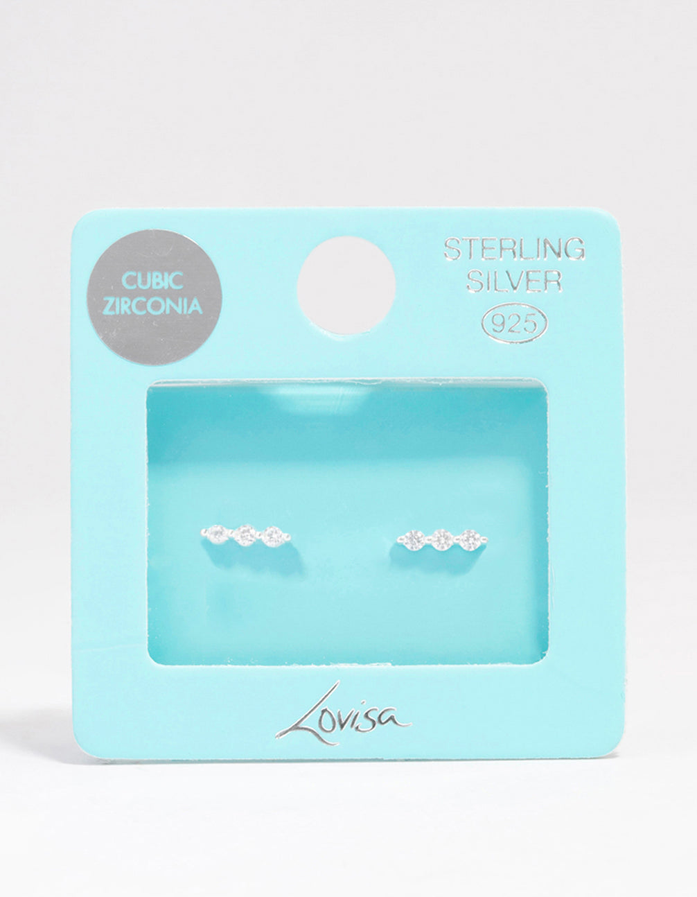 These timeless stud earrings are crafted with genuine sterling silver and feature a trio of mini, cubic zirconia crystals. Perfect for giving your stack a hint of sparkle.
