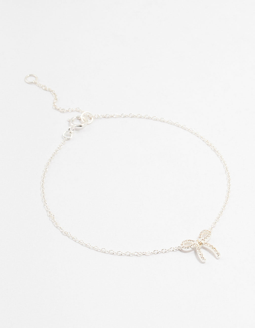Elevate your signature style with stunning sterling silver pieces. Rock this charming bow bracelet for a playful, coquette finish. Crafted from genuine 925 sterling silver and featuring a cubic zirconia-covered bow motif for flirty elegance.