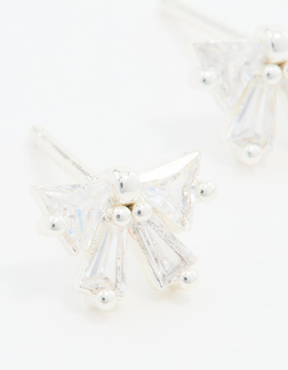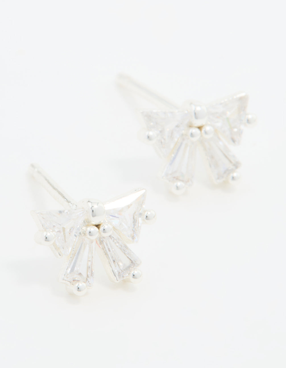 Sterling Silver Cubic Zirconia Bow Stud Earrings