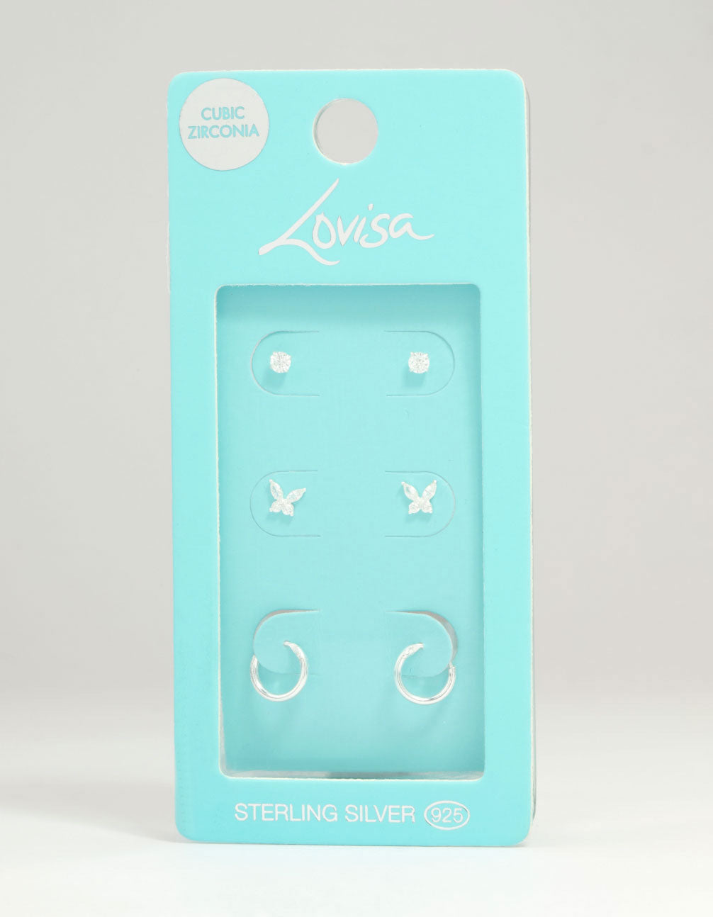Add a little sparkle to your style with this Sterling Silver Cubic Zirconia Butterfly Stud & Hoop Earrings Pack. This versatile jewellery set includes a pair of sleek sterling silver hoops, delicate cubic zirconia butterfly studs, and classic cubic zirconia studs. Perfect for creating an effortless earring stack, these timeless designs are ideal for dressing up everyday outfits or completing a polished evening look. Crafted from durable sterling silver with shimmering cubic zirconia crystals, these earrings are a must-have for anyone who loves versatile accessories. Pair them with your favourite casual jeans-and-tee combo or a chic dress for a night out—it's all about mixing and matching!