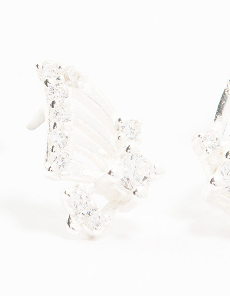 Sterling Silver Cubic Zirconia Butterfly Wings Stud Earrings