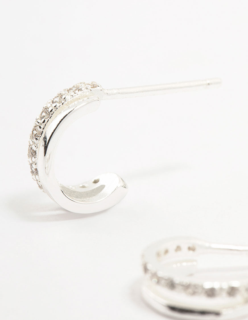 Elevate your signature style with stunning sterling silver pieces. These classic double hoop earrings are adorned with cubic zirconia crystals. Crafted from genuine 925 sterling silver, they're durable, sparkling, and your new essential earrings.