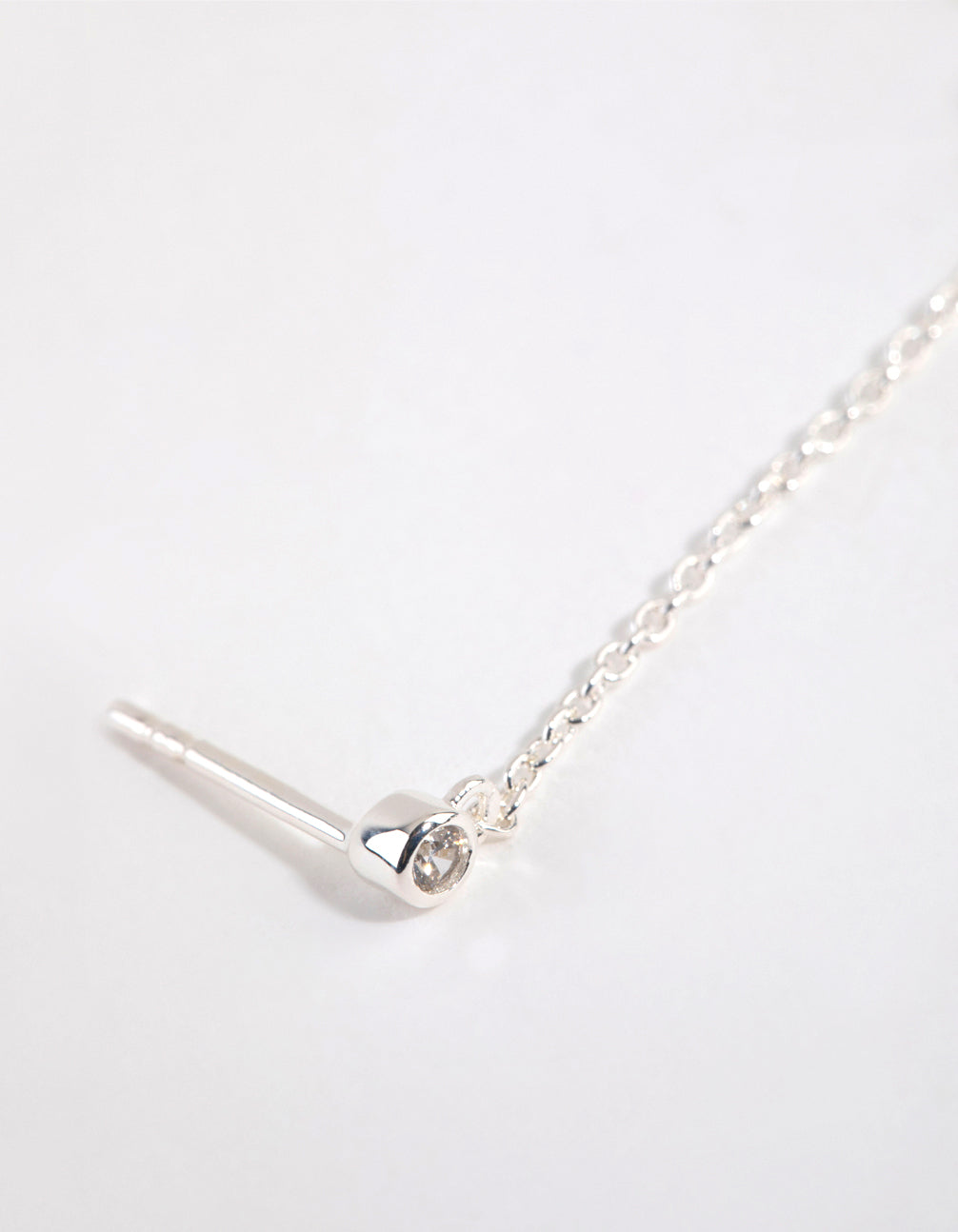 Invest in sterling-silver accessories! This lovely silver stud features two cubic zirconia attached together with a fine silver chain. This earring is designed to go into two piercings on the same ear. Wear it daily!