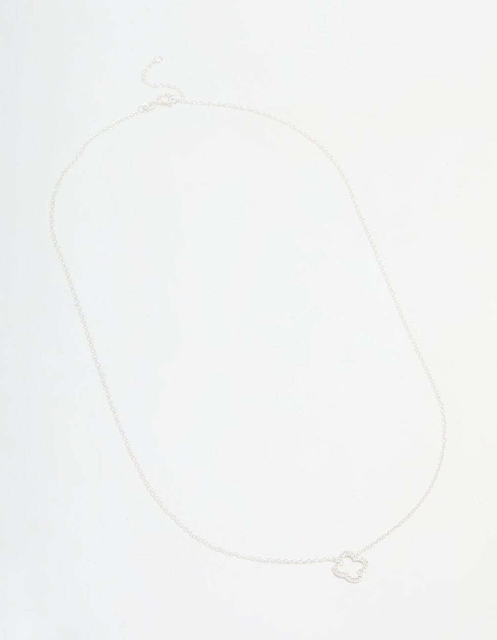 Sterling Silver Cubic Zirconia Flower Pendant Necklace