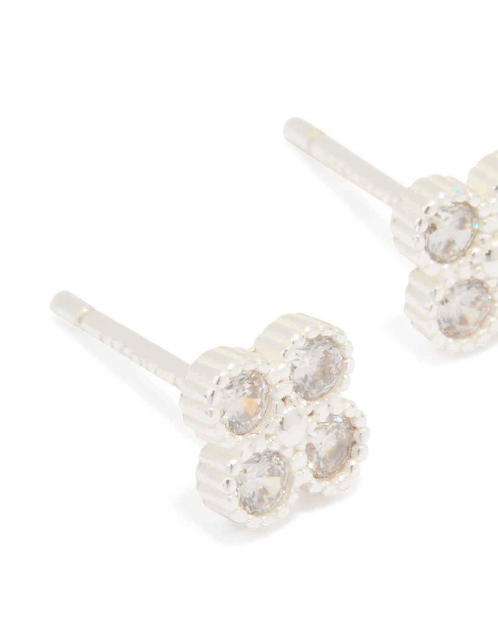 Sterling Silver Cubic Zirconia Mini Flower Stud Earrings