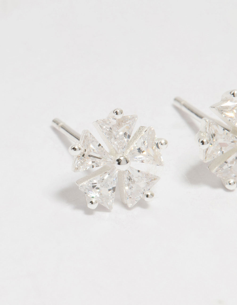 Sterling Silver Cubic Zirconia Petal Stud Earrings