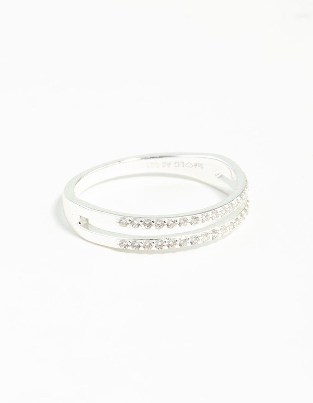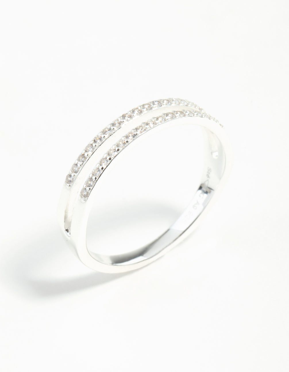 With a double row design, this sterling silver ring presents subtle glam and delicacy through small lined diamantes along the band.