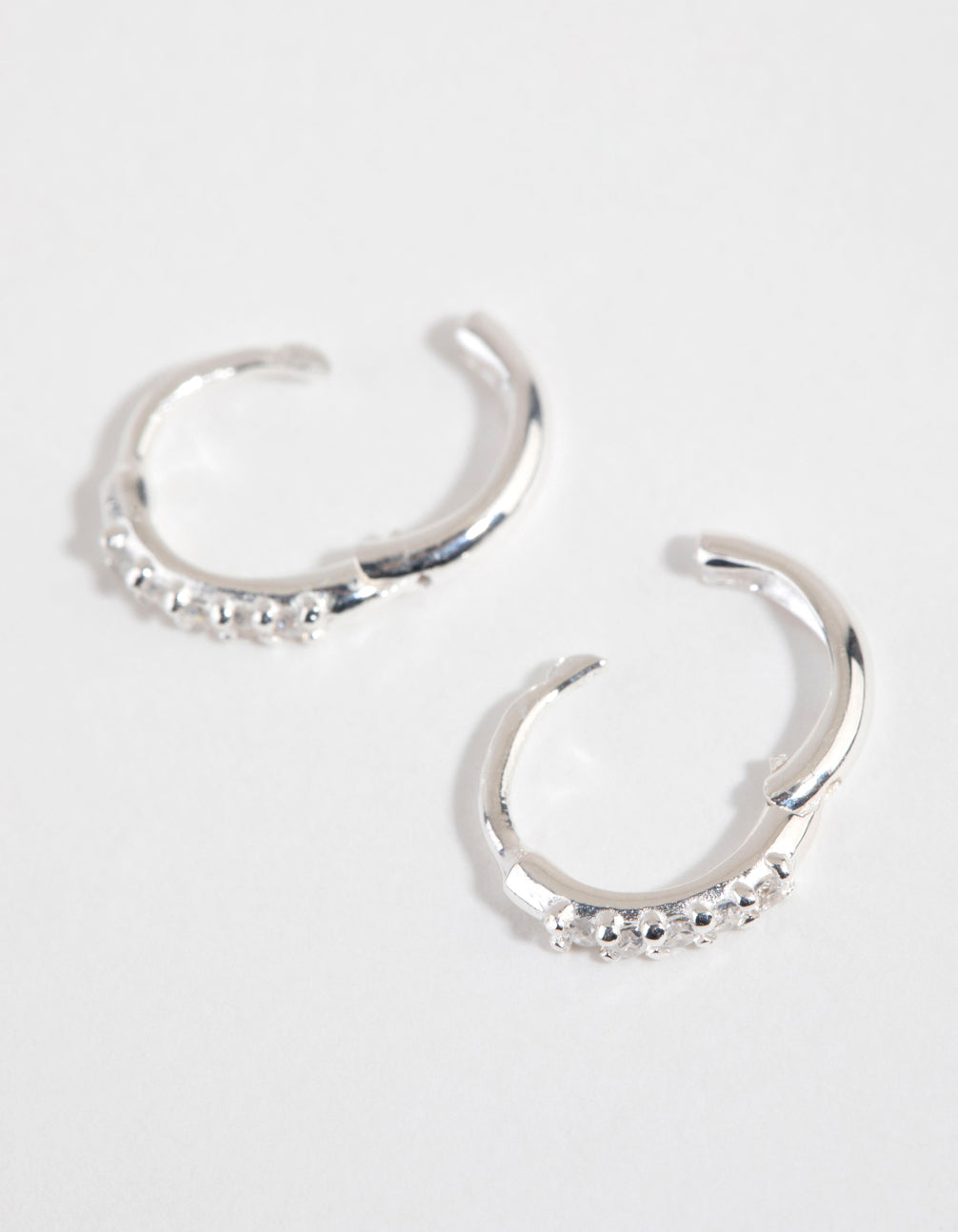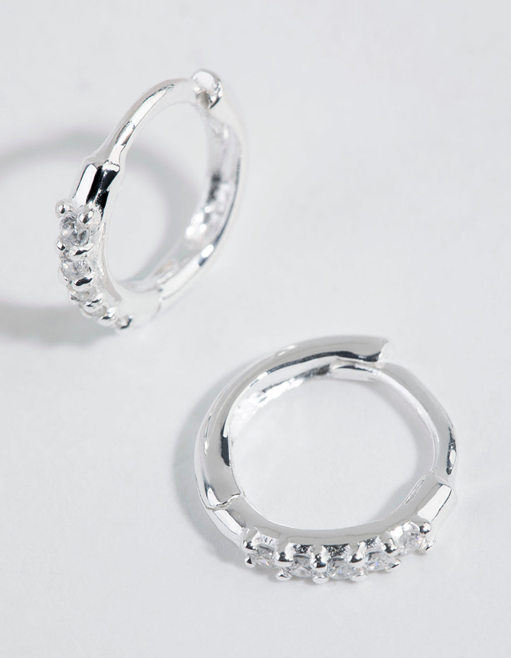 Sterling Silver Mini Cubic Zirconia Huggie Earrings