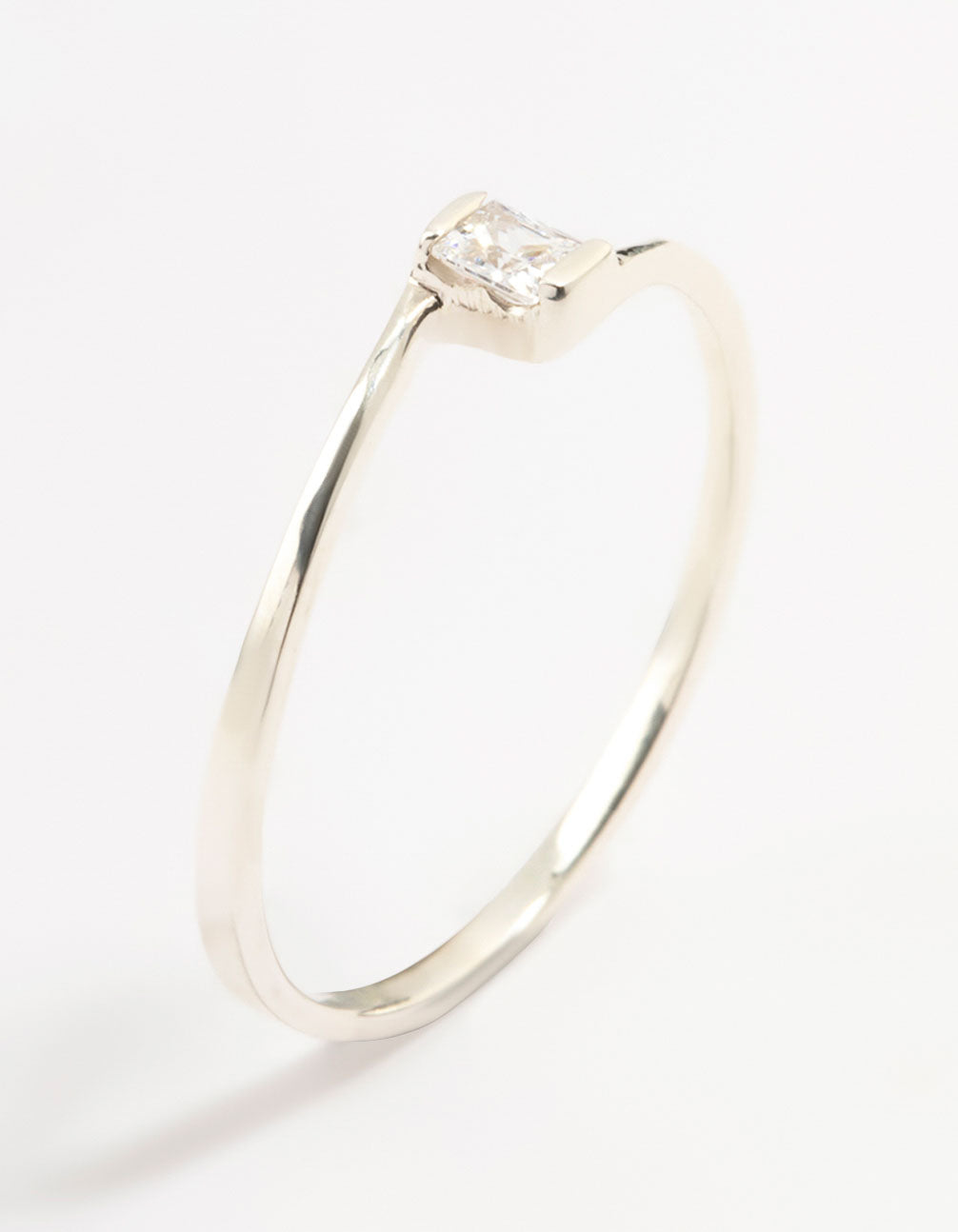 Sterling Silver Mini Square Cubic Zirconia Ring