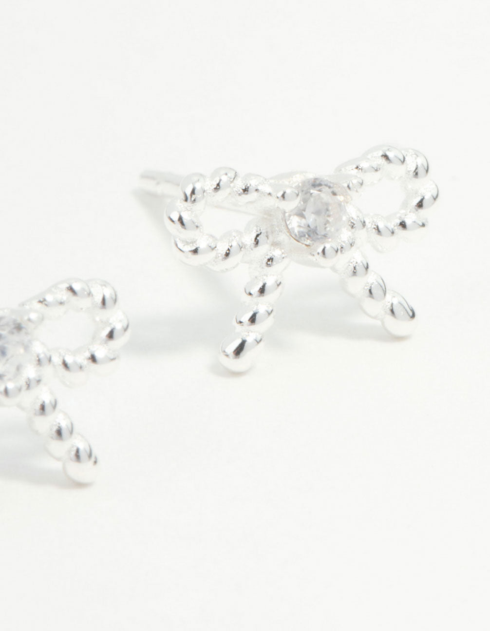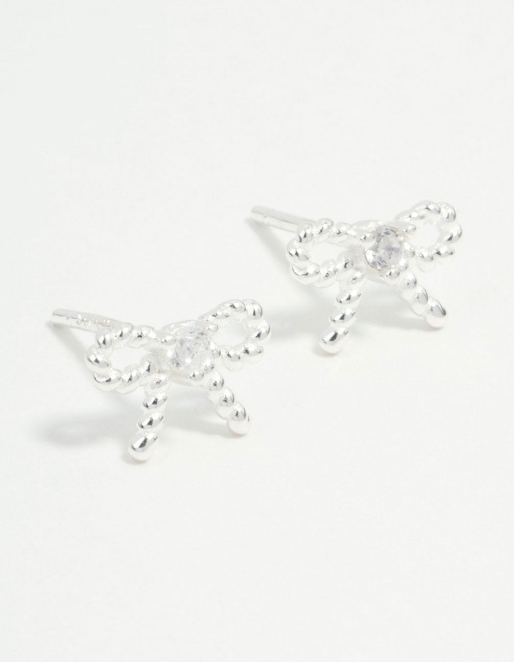Add a modern twist to your look with these sterling silver bow stud earrings. The textured design paired with the classic bow silhouette bring a touch of coquettish flair and a polished and stylish finish to any outfit.