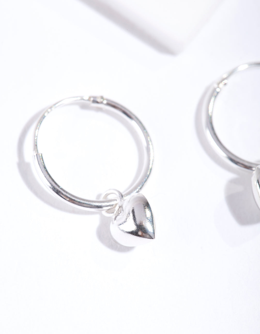 Sterling silver styles are perfect for everyday wear. Round out your collection with quality essentials. This pair of huggie earrings feature a heart charm design.