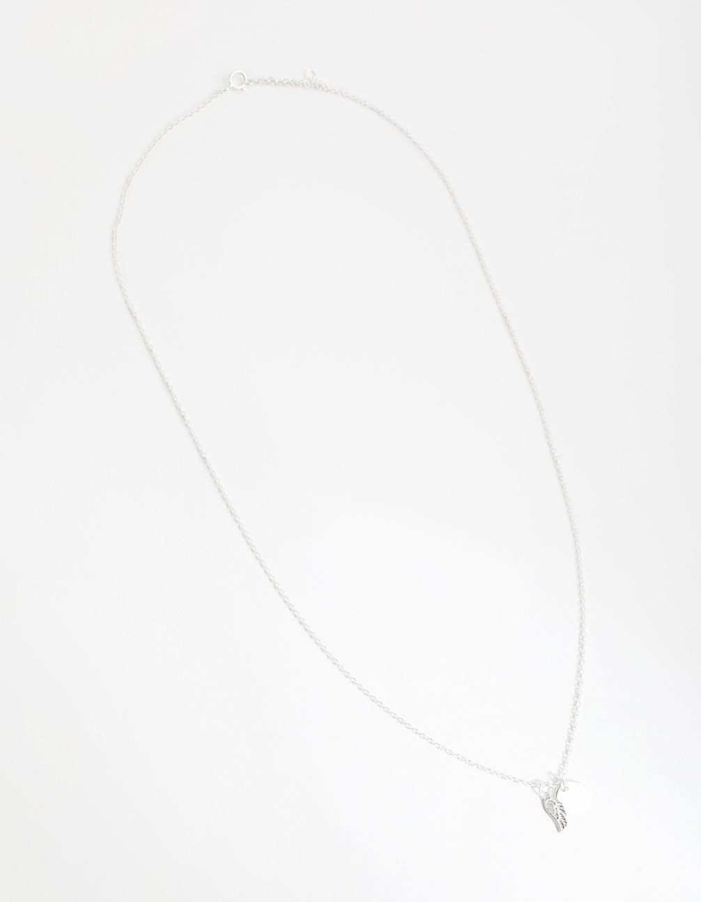 Spoil yourself with a stunning sterling silver necklace. This piece features a fine chain, adorned with angel wing and disc charms. A must have for any collection, sterling silver jewellery is both reliable and fashionable.
