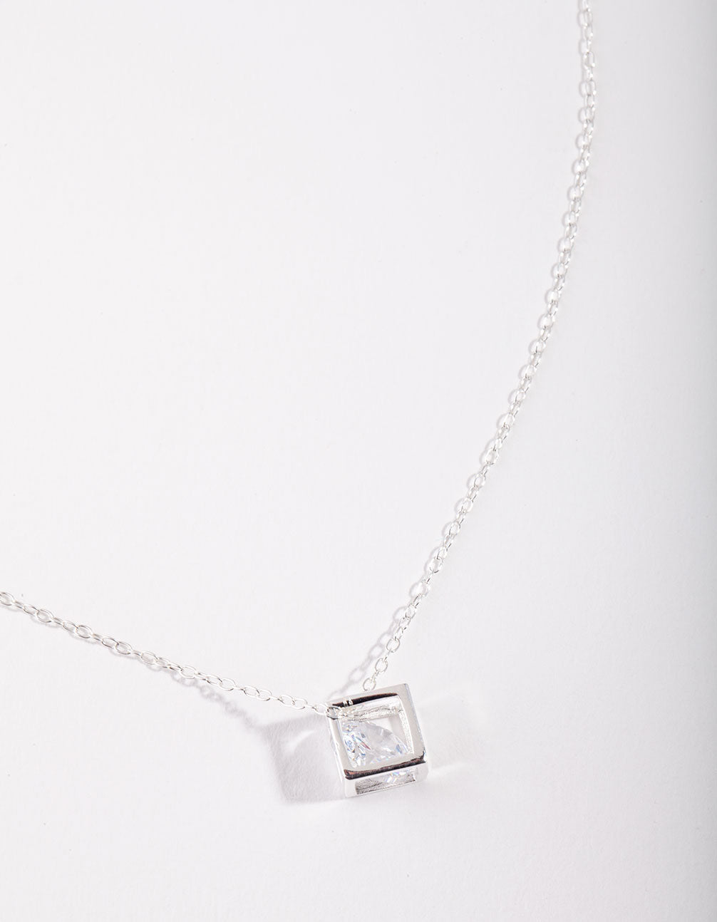 Sterling silver styles are an essential for any jewellery lover. You can't go wrong with premium plated styles on a reliable sterling silver base. This necklace boasts a fine chain design with a shining cubic zirconia cube stone pendant and makes the perfect gift for that someone special.