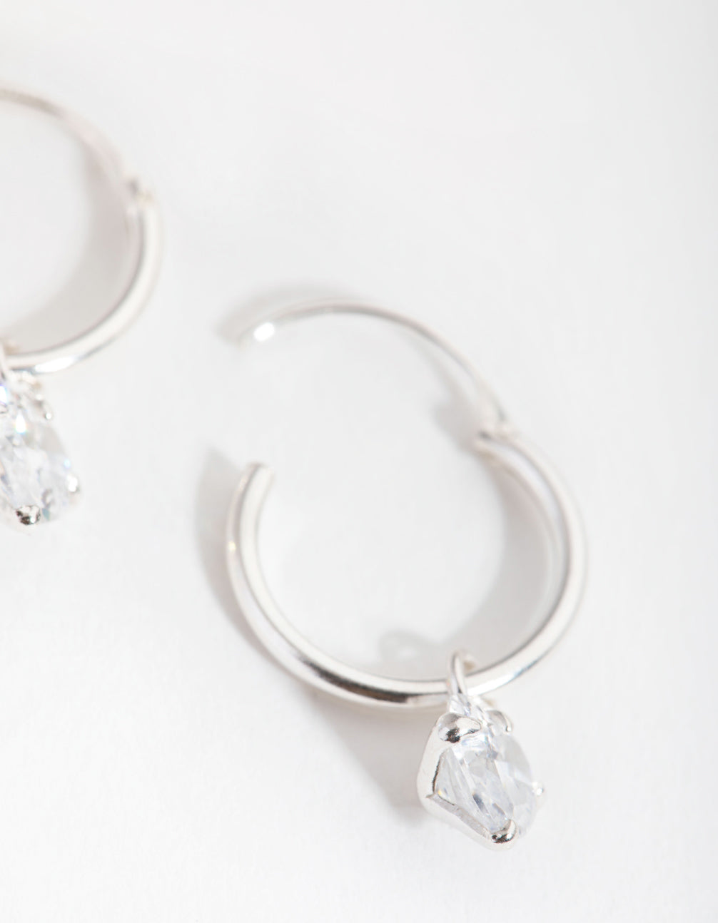 Sterling Silver Cubic Zirconia Heart Hoop Earrings