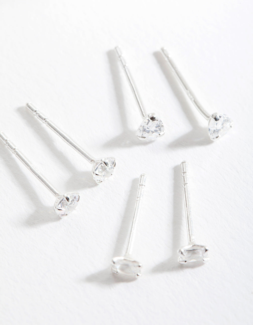 Sterling Silver Mini Cubic Zirconia Stud Earring Pack