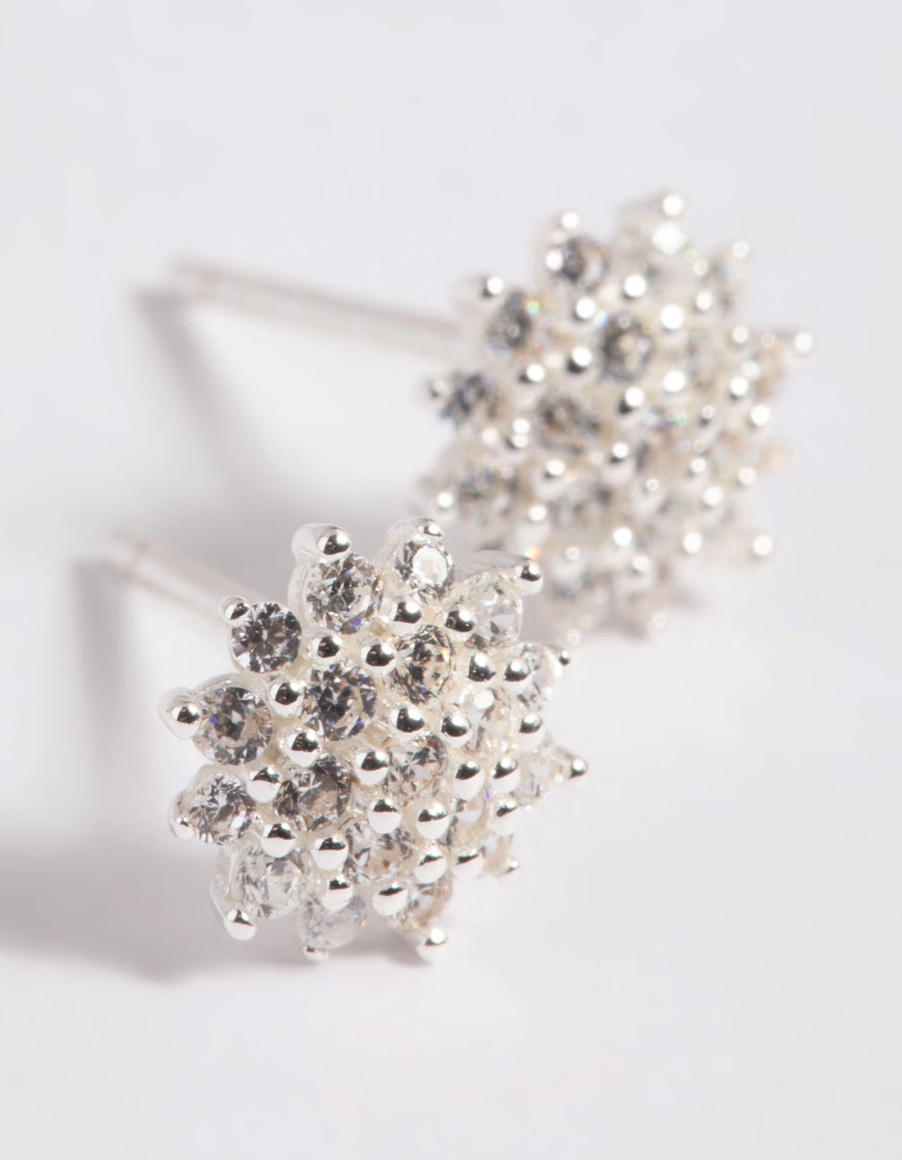 Sterling Silver Cubic Zirconia Sun Stud Earrings