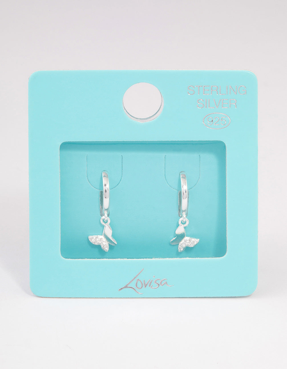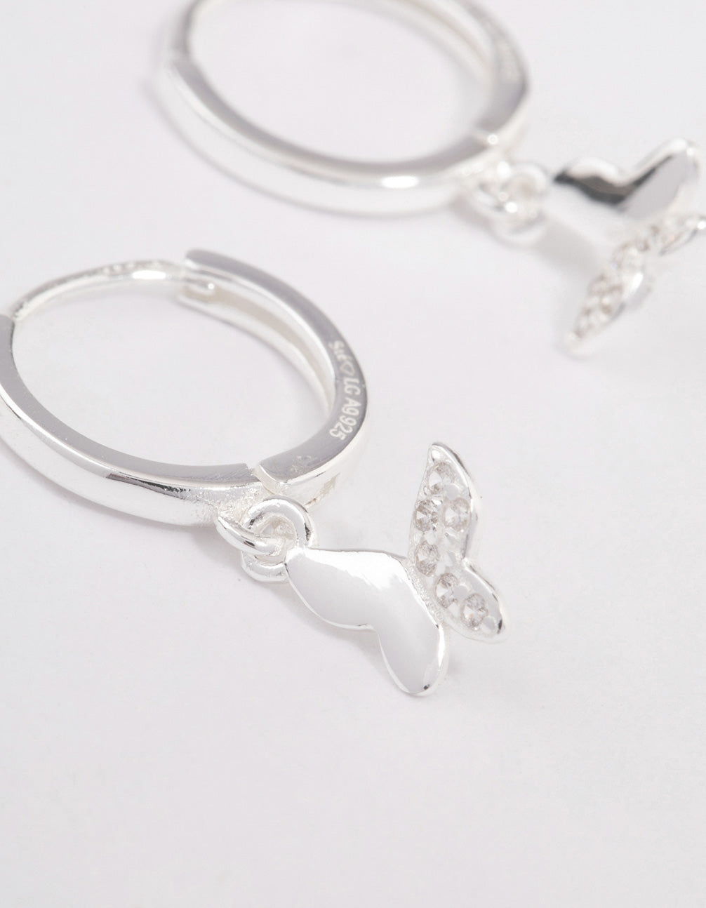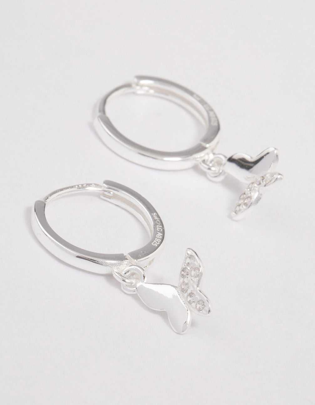 Sterling Silver Diamante Butterfly Huggie Earrings
