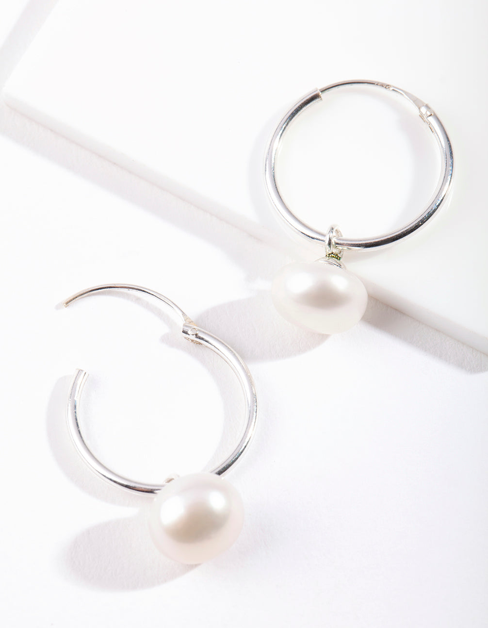 Sterling Silver Freshwater Pearl Hoop Earrings