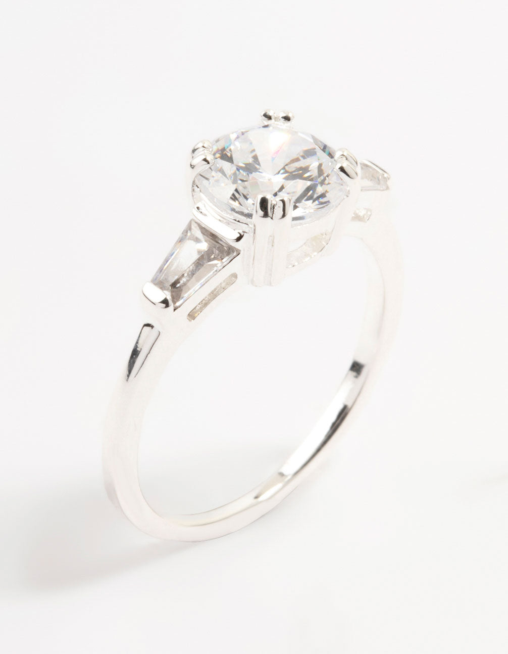 Sterling Silver Taper Bag Round Brilliant Cut Ring