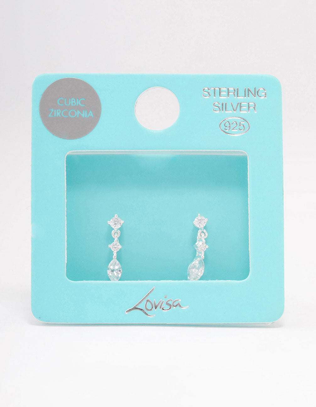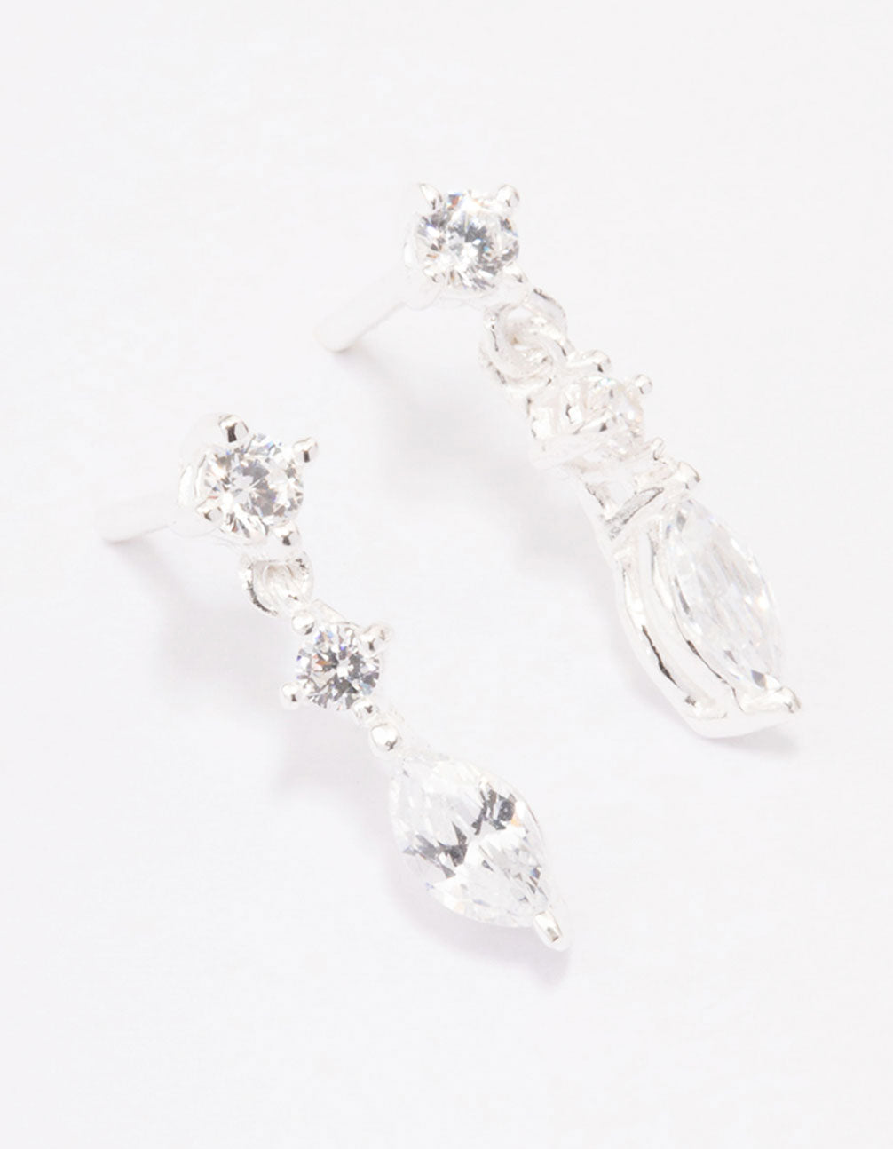 Sterling Silver Triangular Cubic Zirconia Marquise Drop Earrings