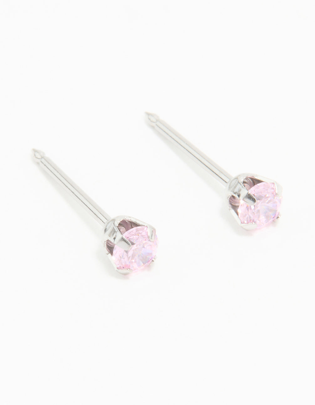Surgical Stainless Steel 3MM Pink Cubic Zirconia Piercing Stud