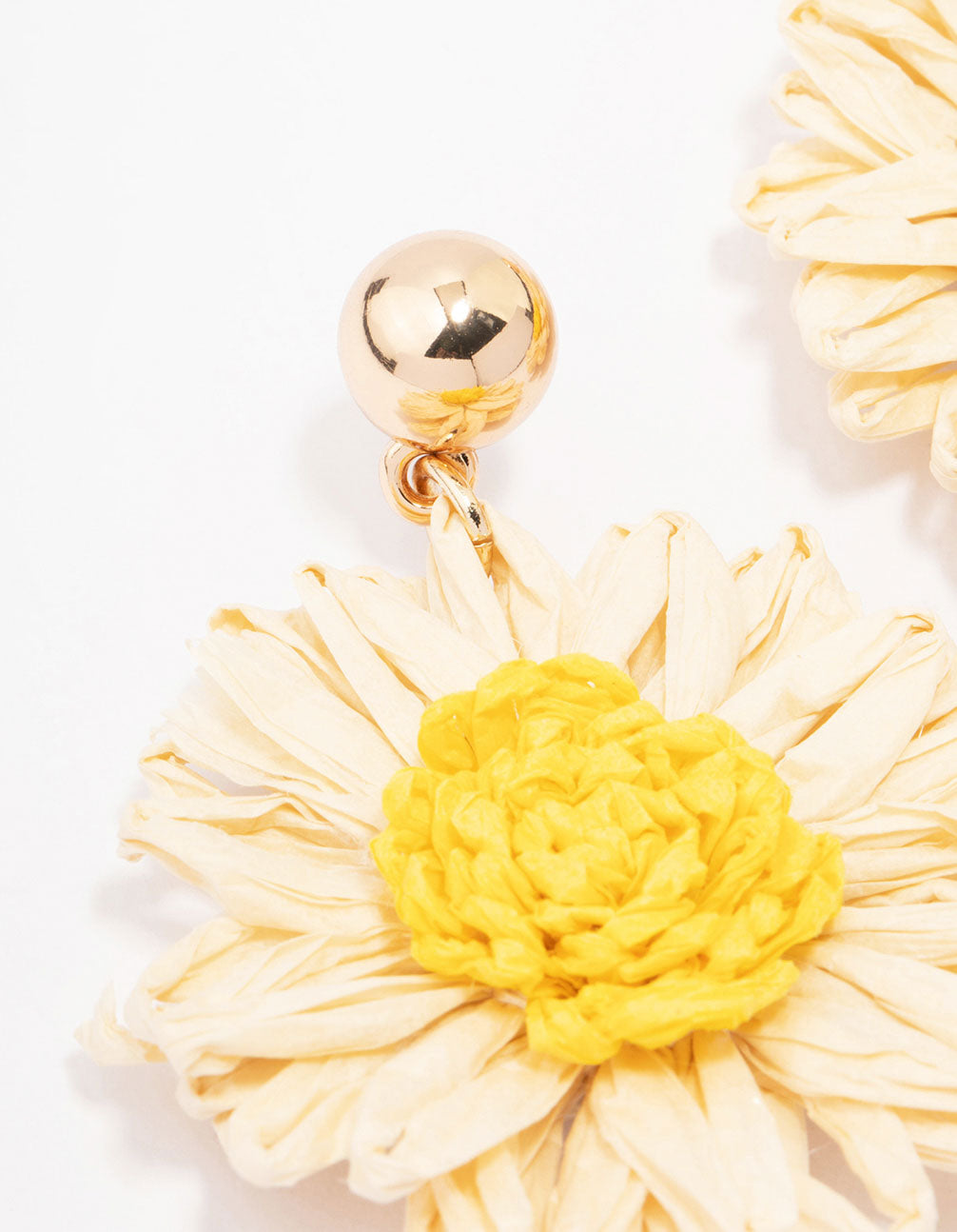 These beautiful drop earrings feature textured, yellow flowers. Perfect for adding a touch of summer to your look!