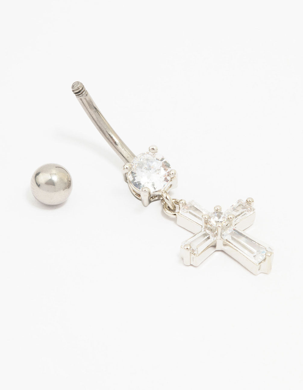 Surgical Steel Baguette Cross Drop Belly Piercing