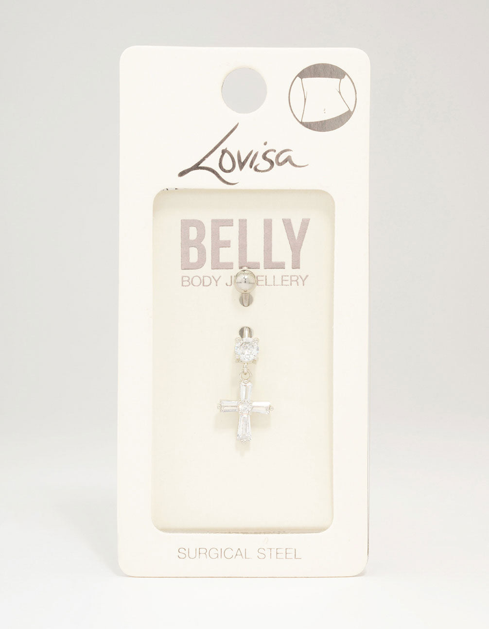Customise your look with our selection of premium, genuine surgical steel piercing jewellery. This belly piercing features a baguette-cut, cross design. Perfect for adding detail to your look!