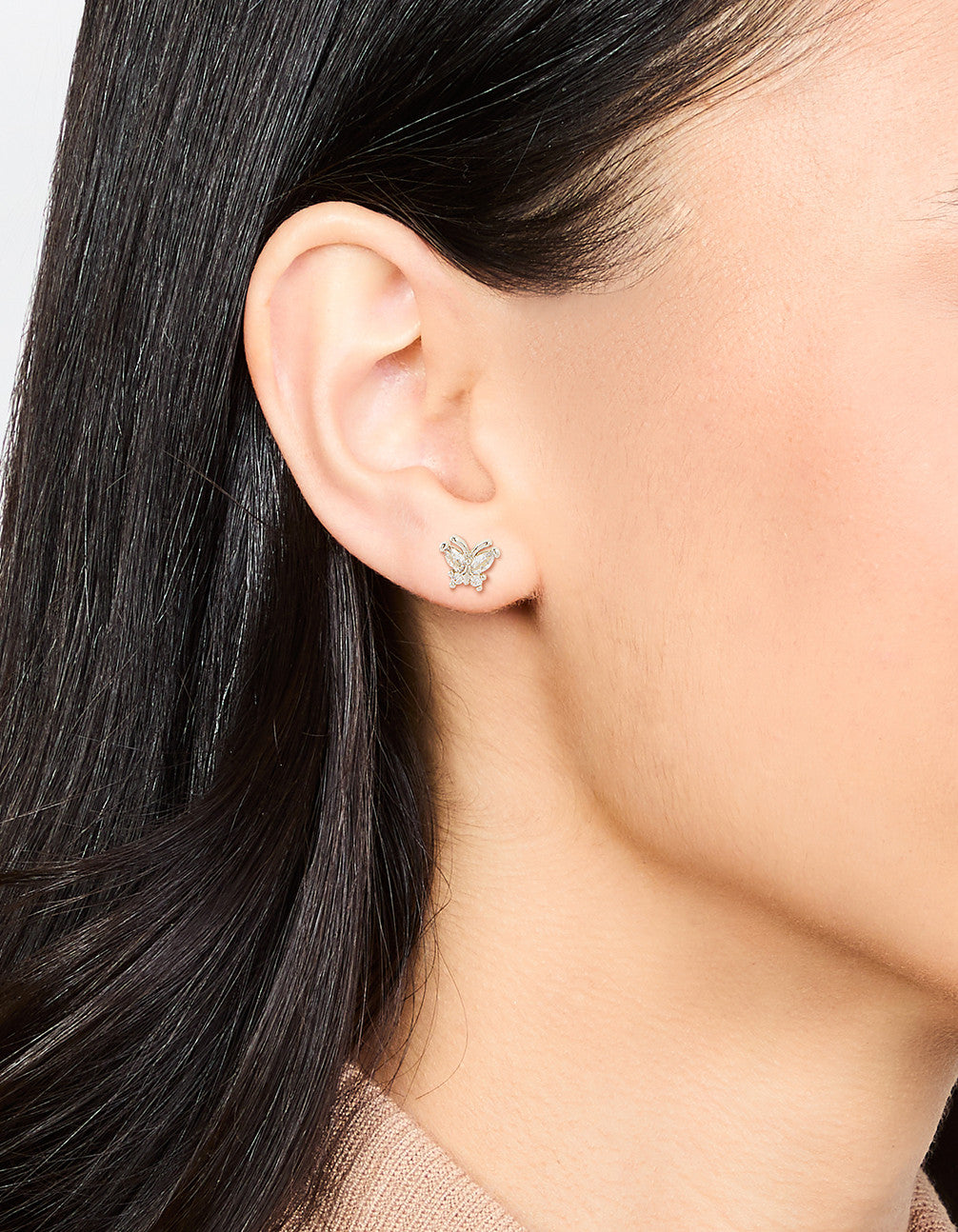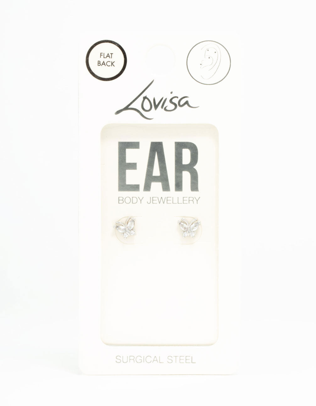 Add some magic to your look with these butterfly flat back studs! Their comfy surgical steel base and sparkling cubic zirconia crystal butterfly motifs make them perfect for all-day glam.