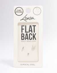 This earring pack contains three individual flat backs, encrusted with cubic zirconia crystals for a hint of sparkle. Style them together for a cohesive finish to your ear stack!