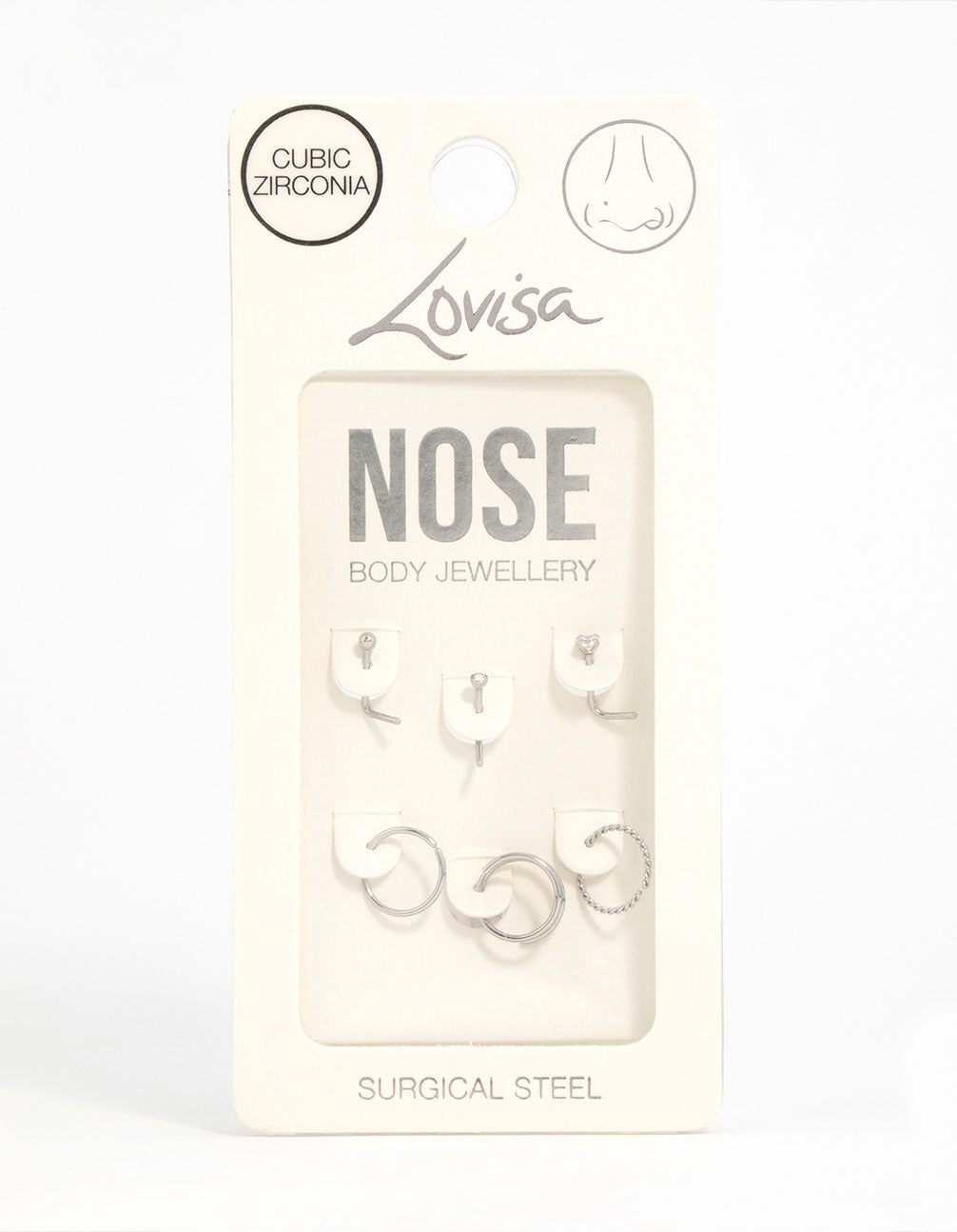 Surgical Steel Cubic Zirconia Simple Mixed Nose Ring & Stud 6-Pack