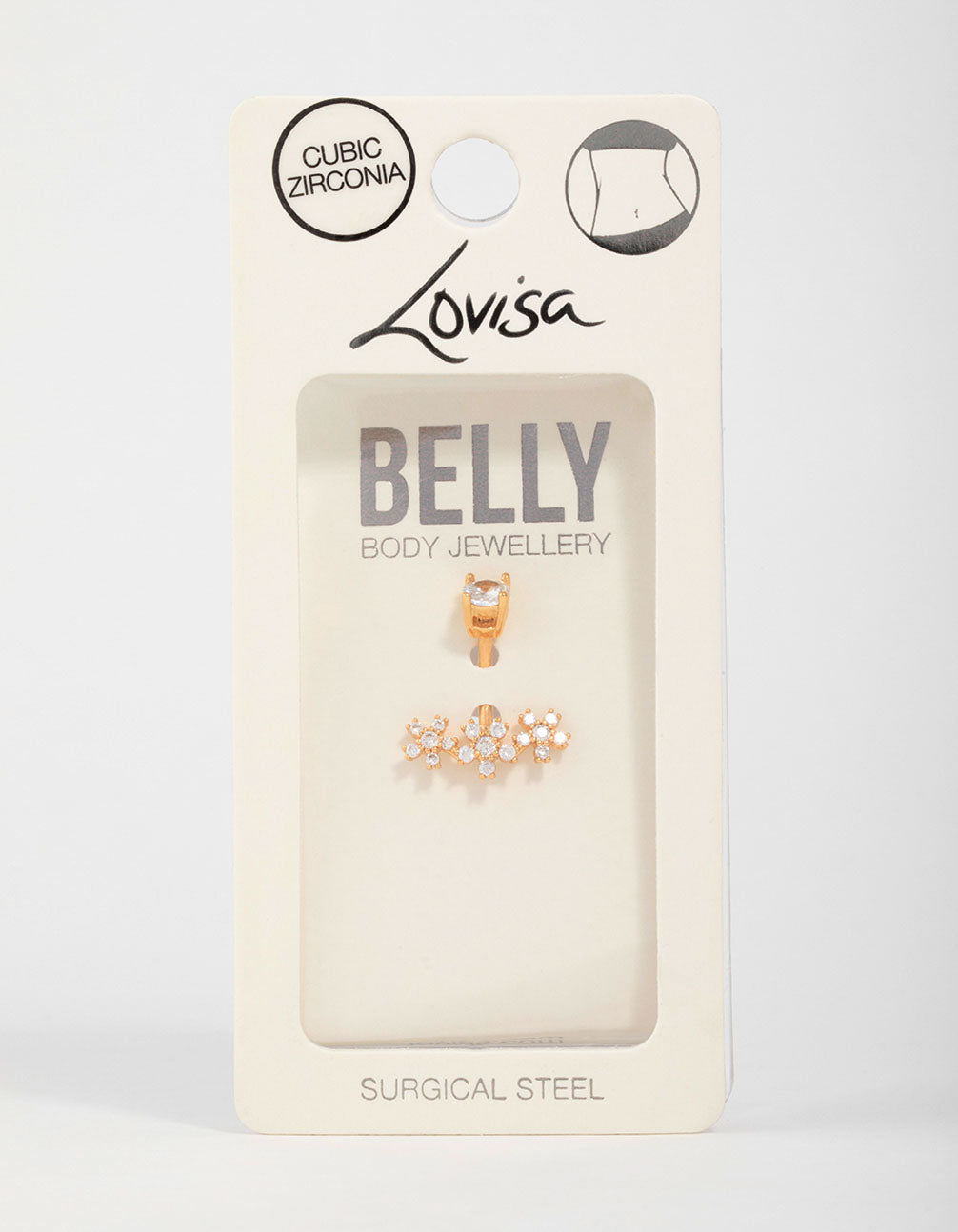 Surgical Steel Cubic Zirconia Triple Flower Belly Bar