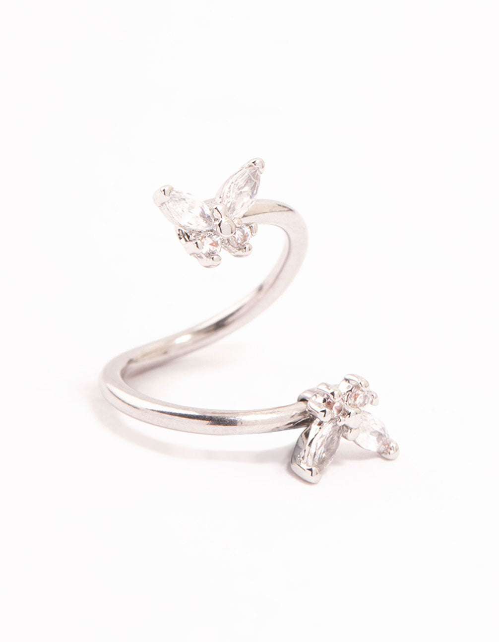Upgrade your belly button style with this twisted double butterfly belly bar! Crafted from sleek surgical steel, the butterfly charms add instant flair and a mesmerising effect.